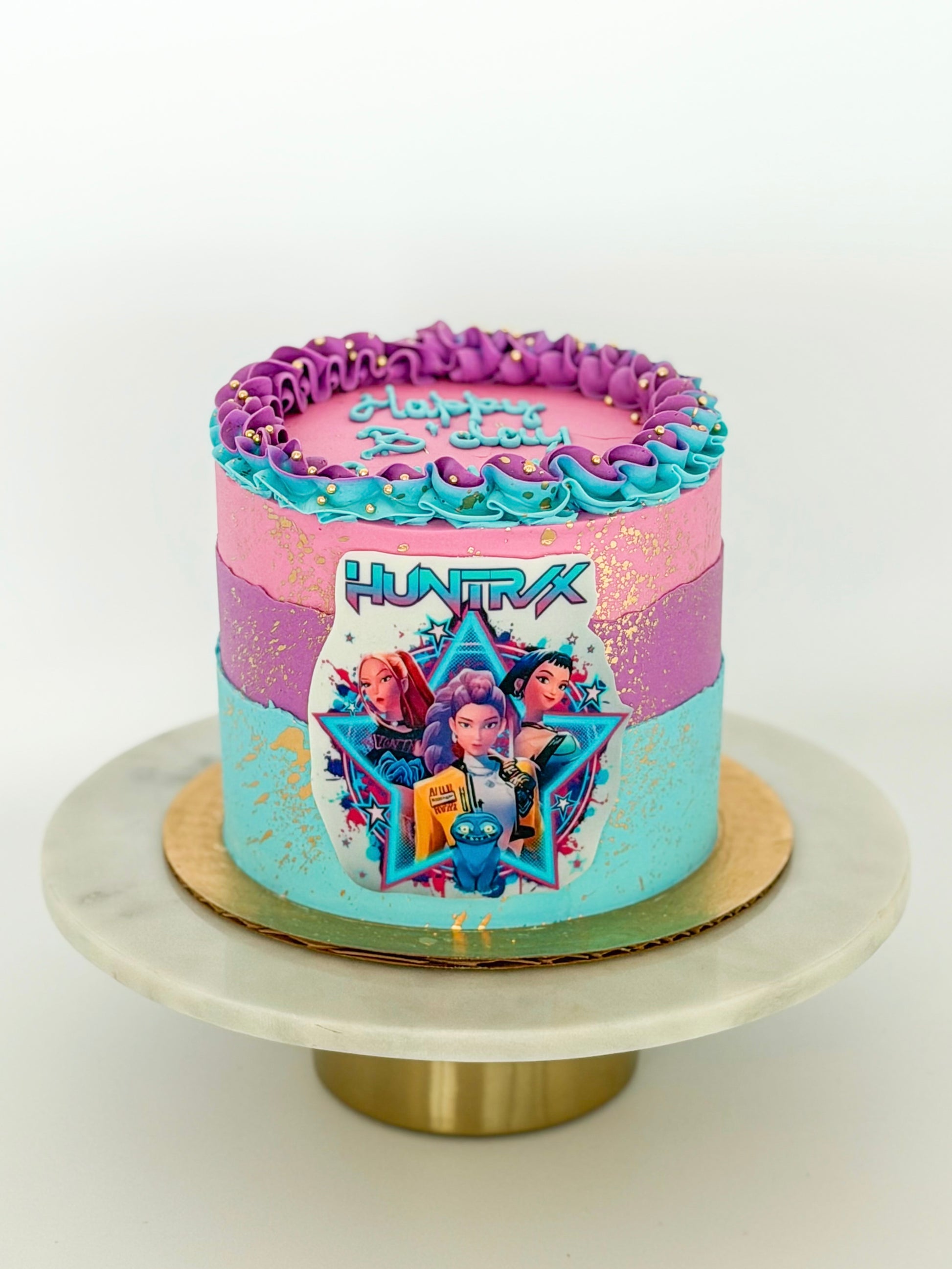 This cake is the perfect way to bring your theme to life in a simple and elegant style. An edible printed image of your choice is placed on the front, making it easy to incorporate just about any theme from Wicked, princesses to video games and more!